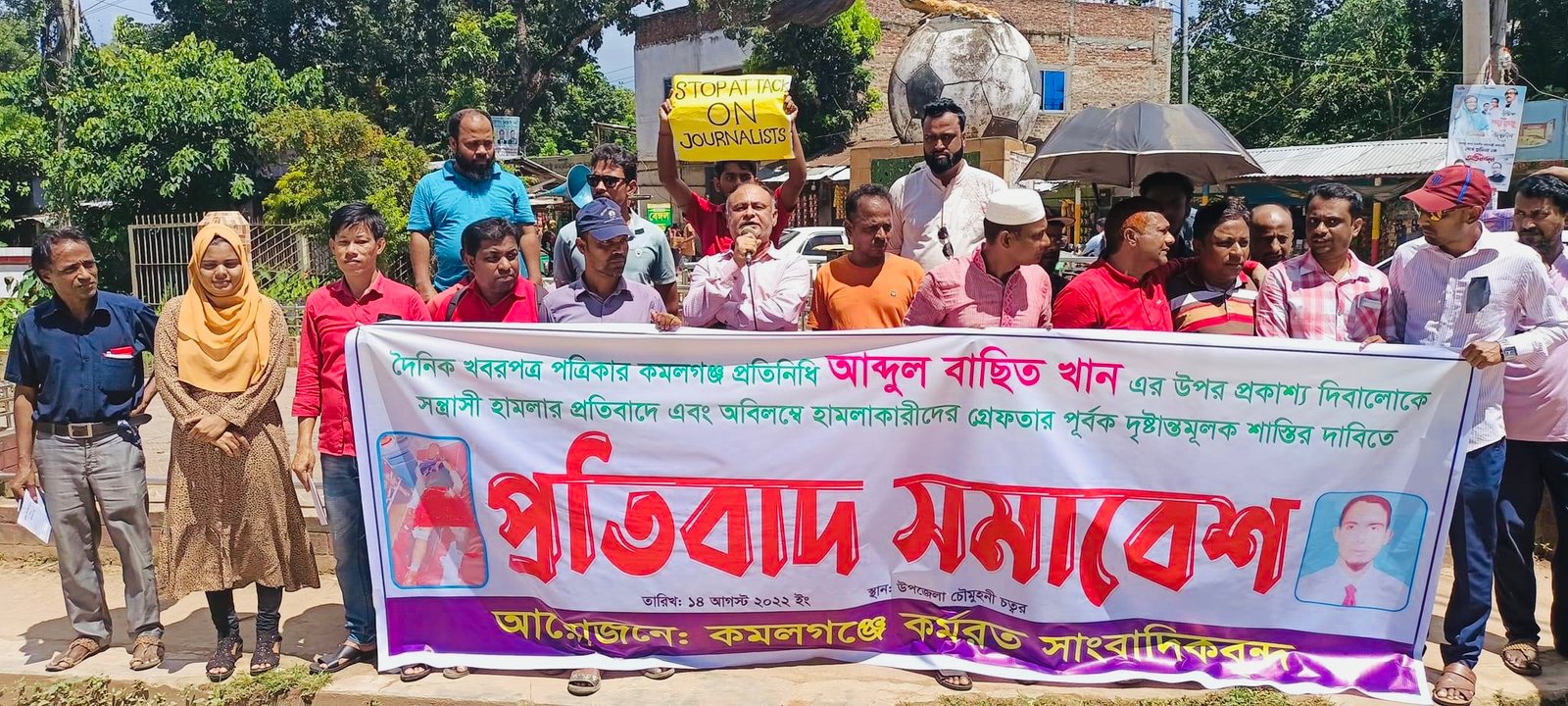 মৌলভীবাজারের কমলগঞ্জে সাংবাদিক আব্দুল বাছিত খান এর উপর দূর্বৃত্তদের হামলার প্রতিবাদে মানব বন্ধন ও প্রতিবাদ সমাবেশ অনুষ্ঠিত হয়। ১৪ আগস্ট রোববার দুপুরে কমলগঞ্জে কর্মরত সাংবাদিকদের উদ্যোগে উপজেলা চত্বরে মানব বন্ধন ও প্রতিবাদ সমাবেশ সাপ্তাহিক কমলগঞ্জের কাগজ সম্পাদক ও পৌর মেয়র মোঃ জুয়েল আহমদ এর সভাপতিত্বে বক্তব্য রাখেন, কমলগঞ্জ প্রেসক্লাব সাধারণ সম্পাদক মুস্তাফিজুর রহমান, প্রথম আলো প্রতিনিধি মুজিবুর রহমান রঞ্জু, ইত্তেফাক প্রতিনিধি নুরুল মোহাইমিন মিল্টন, সমকাল প্রতিনিধি প্রণীত রঞ্জন দেব নাথ, মানবজমিন প্রতিনিধি সাজিদুর রহমান সাজু, জুড়ি প্রেস ক্লাবের সাধারণ সম্পাদক সাইফুল ইসলাম সুমন, শ্রীমঙ্গল প্রেসক্লাবের সাবেক সভাপতি ইসমাইল মাহমুদসহ বিভিন্ন উপজেলা থেকে আসা সাংবাদিক নেতৃবৃন্দ।